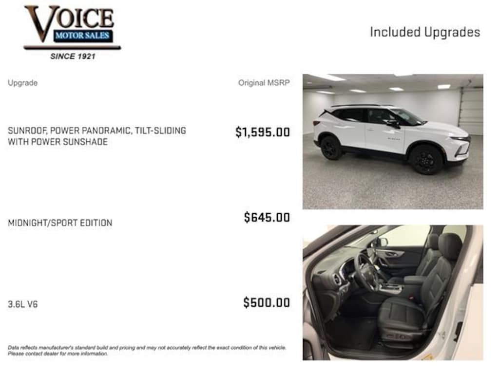 This is one impressive car. I purchased the Chevrolet Blazer with 6 cylinder engine. It has everything I want. Great acceleration, Great styling, Quiet engine, Well equiped, I really like the turn signals in the mirrors, push button start, blind spot monitoring, cross traffic monitoring, Continental Tires, and easy pairing of cell phone. I did not get AWD or GPS. There is nothing, I would change and for the price, a great deal to boot. You won't be disappointed.… - 5.0