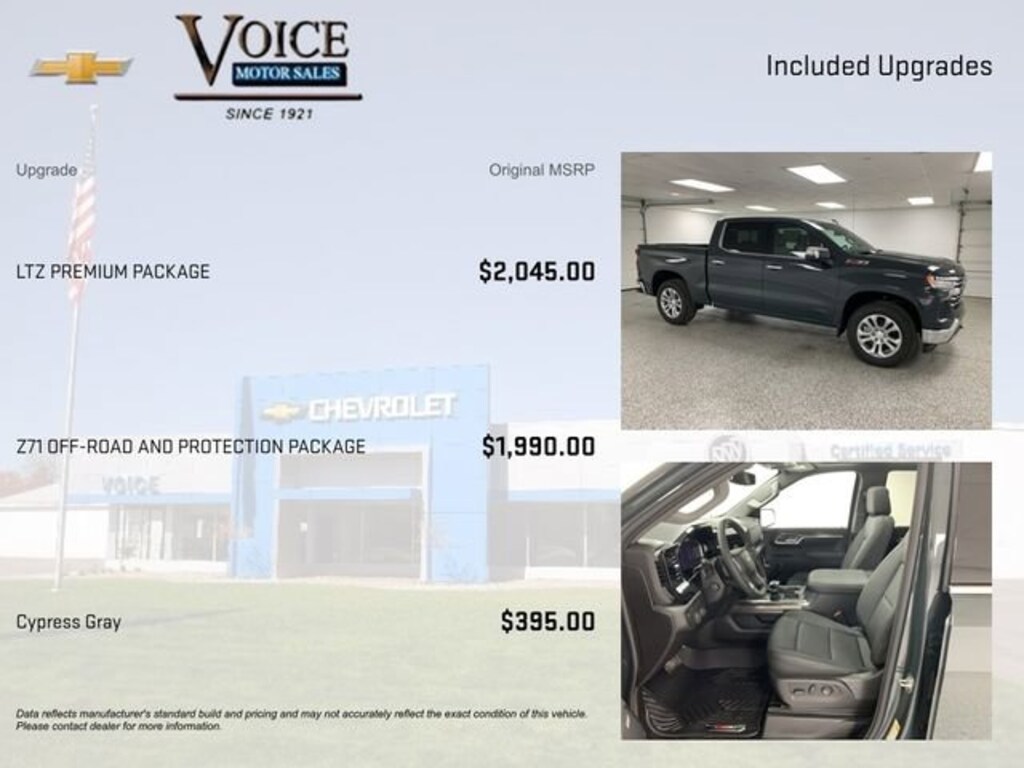 New vehicle pricing is based on GM Employee Discount pricing and includes current offers and incentives. All others pay slightly more. While great effort is being made to ensure the accuracy of the information on this site, errors do occur so please verify information with a customer service representative. Voice Motor Sales is family owned and operated with over 104 years dedicated to your automotive satisfaction. Since 1921 Thank You for Making Voice Your Choice!