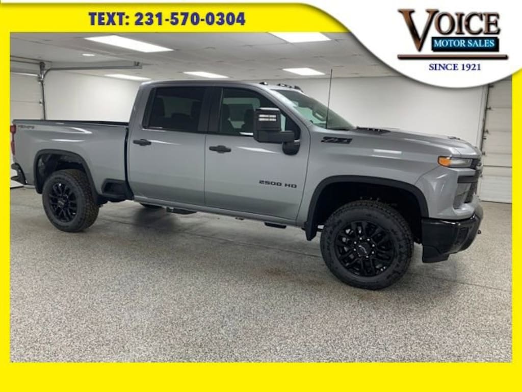 Contact Voice Motor Sales Chevrolet of Kalkaska Michigan 231-258-9178 or email sales@voicemotors.com. All Trades Welcome. At Voice Motor Sales we work with a variety of banks and credit unions to get you the finance rates that work best with your budget. Voice Motor Sales is family owned and operated with over 104 years dedicated to your automotive satisfaction. Since 1921 Thank You for Making Voice Your Choice!Price Includes: $1,000 Customer Cash. Exp. 12/01/2025. All New Vehicle Pricing Is Based On GM Employee Discount Pricing. All Others Pay Slightly More.2026 Sterling Gray Metallic Chevrolet Silverado 2500HD Custom 4WD 4D Crew Cab 6.6L V8 10-Speed AutomaticJet Black w/Cloth Seat Trim, 10-Way Power Driver Seat Adjuster w/Lumbar, 120-Volt Bed Mounted Power Outlet, 120-Volt Interior Power Outlet, 170 Amp Alternator, 2-Speed Electronic Shift Transfer Case, 220 Amp Alternator, 3.5 Diagonal Monochromatic Display DIC, 3.73 Rear Axle Ratio, 4-Wheel Disc Brakes, 6 Speakers, 6-Speaker Audio System, 720 Cold-Cranking Amps Heavy-Duty Battery, ABS brakes, Air Conditioning, Alloy wheels, AM/FM radio: SiriusXM with 360L, Apple CarPlay/Android Auto, Auto High-beam Headlights, Auto-Dimming Inside Rear-View Mirror, Black Chevytec Spray-On Bedliner, Black Mirror Caps, Black Tailgate Lettering (LPO), Bluetooth® For Phone, Brake assist, Chevrolet Connected Access Capable, Cloth Seat Trim, Color-Keyed Carpeting Floor Covering, Compass, Custom Blackout Package, Custom Convenience Package, Custom Value Package, CX Safety Package, Deep-Tinted Glass, Delay-off headlights, Driver door bin, Dual front impact airbags, Dual front side impact airbags, Dual Rear USB Ports (Charge Only), Durabed Pickup Bed, Electric Rear-Window Defogger, Electronic Cruise Control w/Set & Resume Speed, Electronic Stability Control, Emergency communication system: OnStar, EZ Lift Power Lock & Release Tailgate, Front 40/20/40 Split-Bench Seats w/Lockable Storage, Front anti-roll bar, Front Center Armrest w/Storage, Front reading lights, Front Rubberized Vinyl Floor Mats, Front wheel independent suspension, Fully automatic headlights, Gooseneck/5th Wheel Prep Package, HD Rear Vision Camera, Heated & Auto-Dimming Vertical Trailering Mirrors, Heated door mirrors, Heated Vertical Trailering Mirrors, Hill Descent Control, Illuminated entry, Lane Change Alert w/Side Blind Zone Alert, LED Cargo Area Lighting, LED Smoked Amber Roof Marker Lamps, Locking Tailgate, Low tire pressure warning, Manual Tailgate Function w/No EZ Lift, Manual Tilt-Wheel Steering Column, Occupant sensing airbag, OnStar Services Capable, Outside temperature display, Overhead airbag, Overhead console, Panic alarm, Passenger door bin, Passenger vanity mirror, Power Door Locks, Power door mirrors, Power Front Windows w/Driver Express Up/Down, Power Front Windows w/Passenger Express Down, Power Rear Windows w/Express Down, Power steering, Power windows, Preferred Equipment Group 1CX, Premium audio system: Chevrolet Infotainment 3, Push Button Start, Radio: Chevrolet Infotainment 3 System, Rear 60/40 Folding Bench Seat (Folds Up), Rear Cross Traffic Alert, Rear reading lights, Rear Rubberized Vinyl Floor Mats, Rear step bumper, Remote Keyless Entry, Remote keyless entry, Remote Vehicle Starter System, SiriusXM w/360L Trial Subscription, Snow Plow Prep/Camper Package, Speed control, Split folding rear seat, Standard Tailgate, Suspension Package, Tachometer, Tilt steering wheel, Traction control, Trip computer, Turn signal indicator mirrors, Ultrasonic Front & Rear Park Assist, Unauthorized Entry Theft-Deterrent System, Variably intermittent wipers, Voltmeter, Wheels: 20 High Gloss Black Painted, Wi-Fi Hotspot Capable, Wireless Phone Projection, Z71 Off-Road Package, Jet Black w/Cloth Seat Trim.