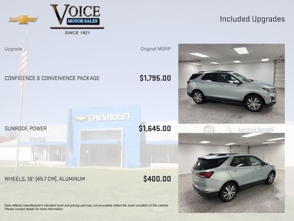 While great effort is being made to ensure the accuracy of the information on this site, errors do occur so please verify information with a customer service representative. Voice Motor Sales is family owned and operated with over 105 years dedicated to your automotive satisfaction. Since 1921 Thank You for Making Voice Your Choice!