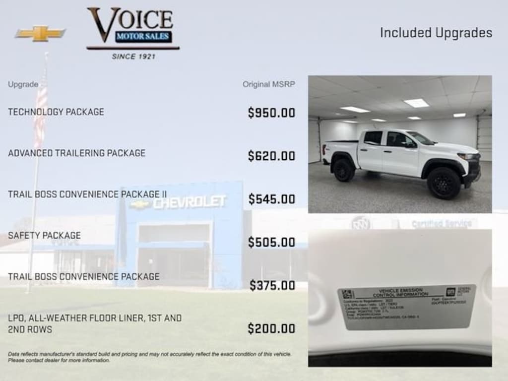 This Colorado Trail Boss is also loaded with advanced safety and technology features, including Adaptive Cruise Control, Rear Pedestrian Alert, HD Surround Vision, and Blind Zone Steering Assist. The premium cloth interior, power driver's seat, and EZ Lift and Lower Tailgate add comfort and convenience.